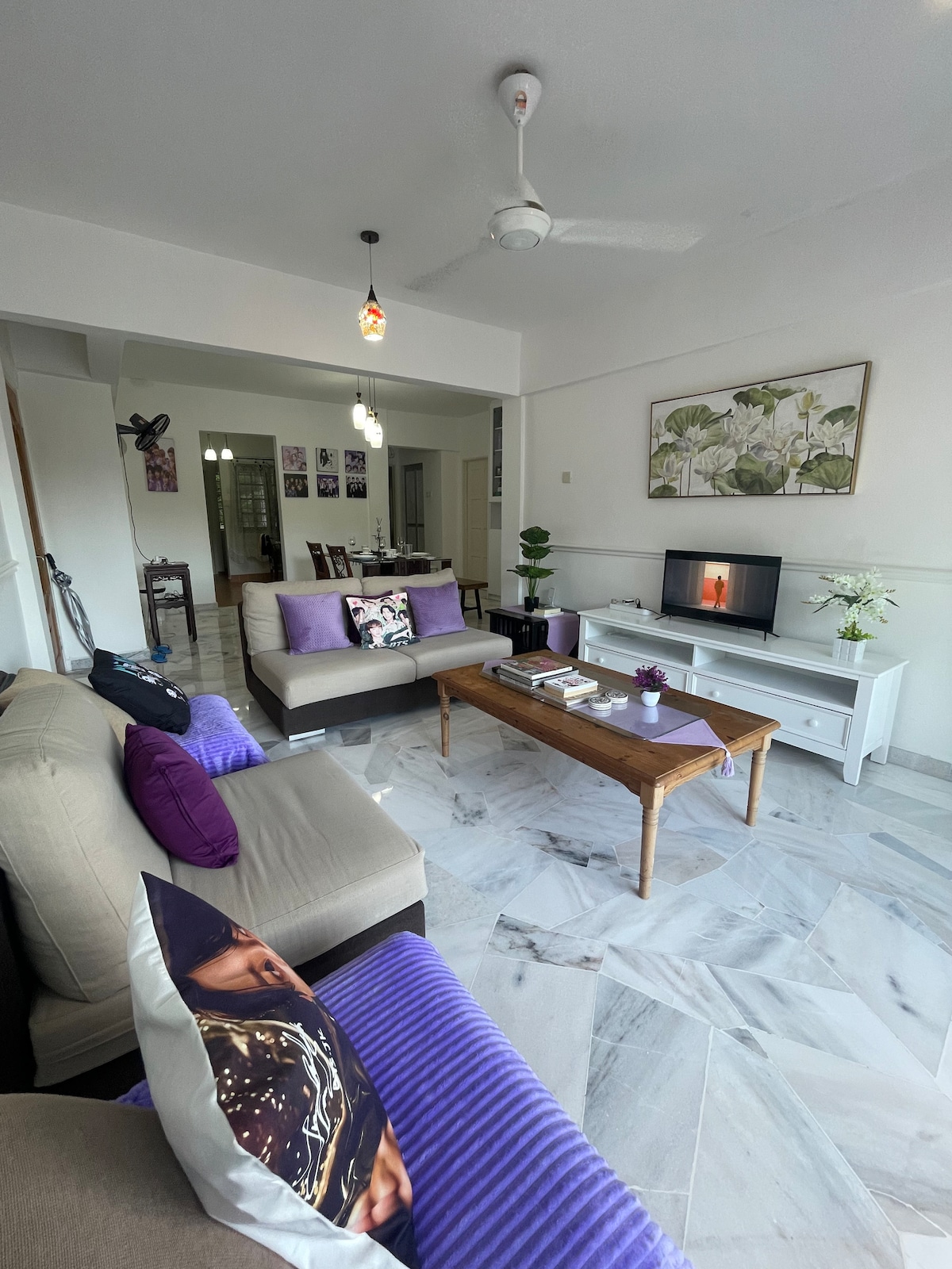 Tenha calma nesta escapadela única e tranquila. Se é um "exército", vai ficar entusiasmado. Se não for, este será ainda um lugar único para relaxar e experimentar como são os exércitos com todas as coisas BTS. O espaço é espaçoso e arejado com uma vista modesta e adequado para famílias pequenas. 2 camas queen, 2 camas superindividuais, 2 casas de banho completas, 2 varandas, cozinha com louça completa. Wi-Fi, TV, mesa de jantar e sofá para relaxar. Tem todas as necessidades básicas, quase como em casa.