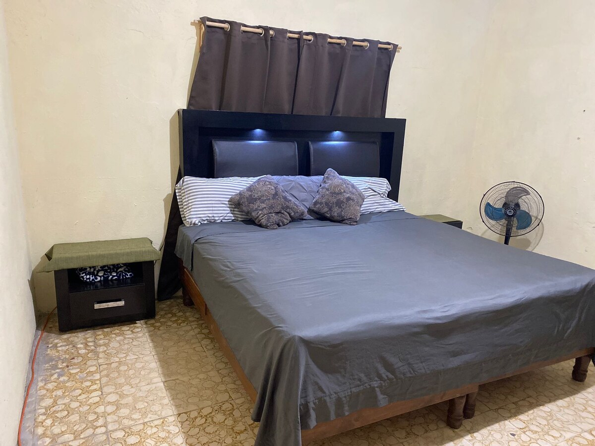 Departamento para descansar, con ubicación céntrica y económico. Cuenta con cama king y wi-fii, un abanico de piso, un closet, una plancha, baño completo, 1 cocina semintegrada con parrilla electrica, airfryer y un horno pequeño, utensilios de cocina y tarja de agua caliente y clima.