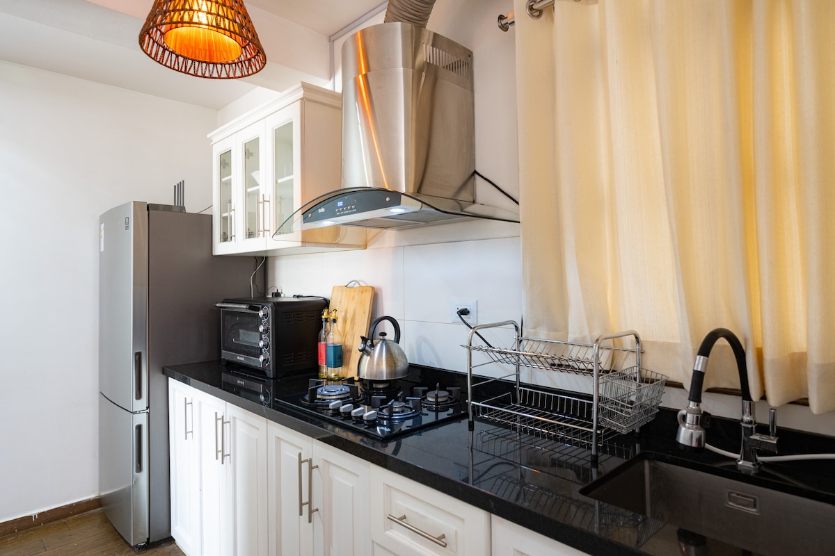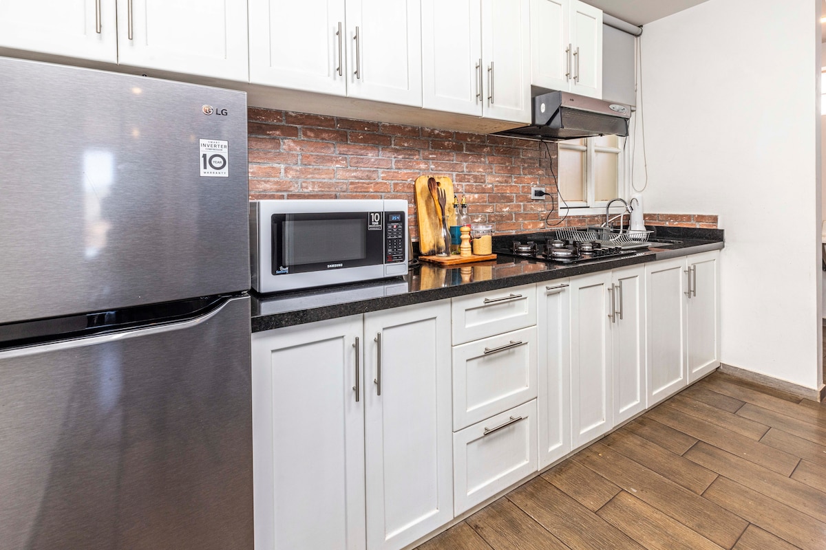 Desfrute de uma experiência elegante nesta nova acomodação com localização central. Localizado no segundo andar muito perto de tudo (mercados, restaurantes, lojas de todos os tipos, etc). Construído em 65 metros quadrados aprox. e com boa distribuição de ambientes: um quartos, sala, cozinha, banheiro e lavanderia. Ideal para estadias curtas e longas, temos internet Wi-Fi de alta velocidade e cabeamento de internet para nômades digitais e viajantes.