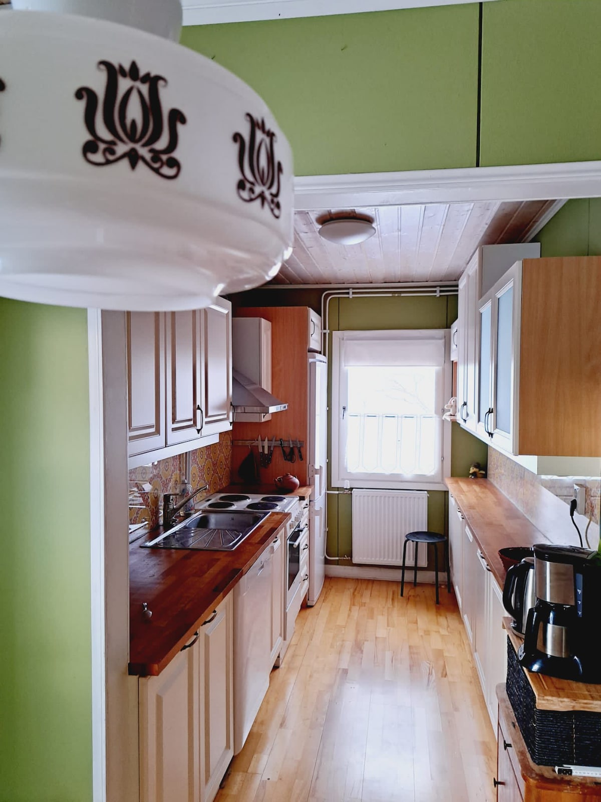 Localizado perto da natureza, o fim da moradia geminada fica a cerca de 5 km do centro de Hämeenlinna. Quintal/pátio privado e sauna. O carvão e a zona exterior saem a cerca de 300 m de distância, até à praia a 700 m, até à autoestrada aprox. 2 km. Grandes centros comerciais a cerca de 1 km de distância. Os itens de bicicleta e de cuidados infantis são usados separadamente, mediante pedido. No apartamento, a cozinha é básica (fogão,micro-ondas, máquina de café, máquina de café, pratos, pratos, utensílios de cozinha). Não há máquina de lavar louça. A máquina de lavar roupa está disponível para mais de 3 noites.