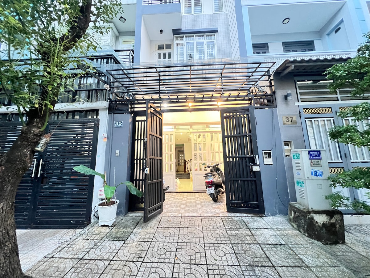 Nossa espaçosa casa de 4 quartos é um duplex privativo de dois andares que acomoda confortavelmente até 12 hóspedes, incluindo crianças. Possui entrada exclusiva, piscina na cobertura, jardim e cozinha — tudo à sua disposição durante a estadia. Localizado em um bairro tranquilo do Distrito 7, o duplex fica em um prédio com apenas outra unidade. A poucos passos, você encontrará um parque tranquilo e um lago ecológico. A uma curta caminhada, há cafés, spas, supermercado e restaurantes.