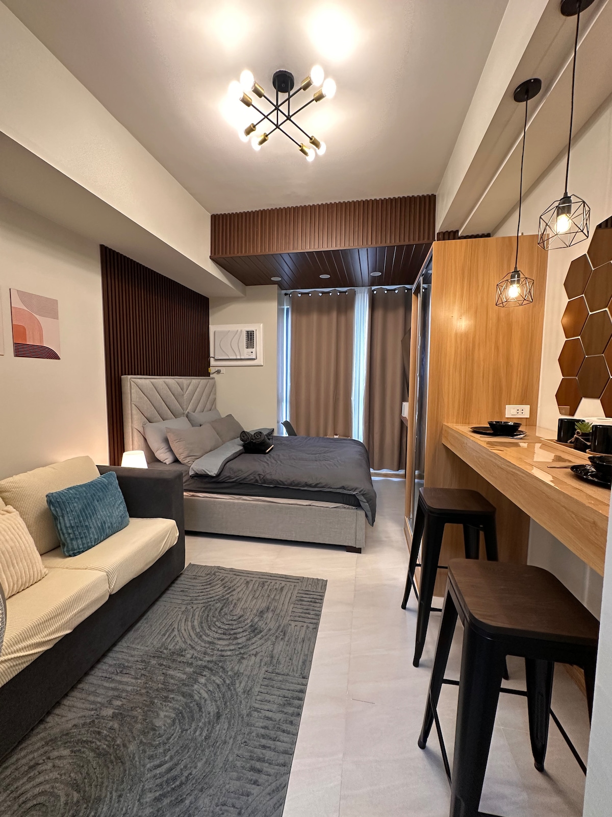 Experimente a mistura perfeita de conforto caseiro e luxo de hotel, onde seu relaxamento, prazer e conforto são nossas principais prioridades. Originalmente projetado como um condomínio de 2 quartos, transformamos esta unidade em uma suíte de 1 quarto com uma varanda, oferecendo uma espaçosa sala de estar e jantar. Completo com eletrodomésticos, opções de entretenimento e consoles de jogos, este apartamento totalmente mobiliado em Quezon City está disponível para aluguel diário, semanal ou mensal, ideal para suas próximas férias.