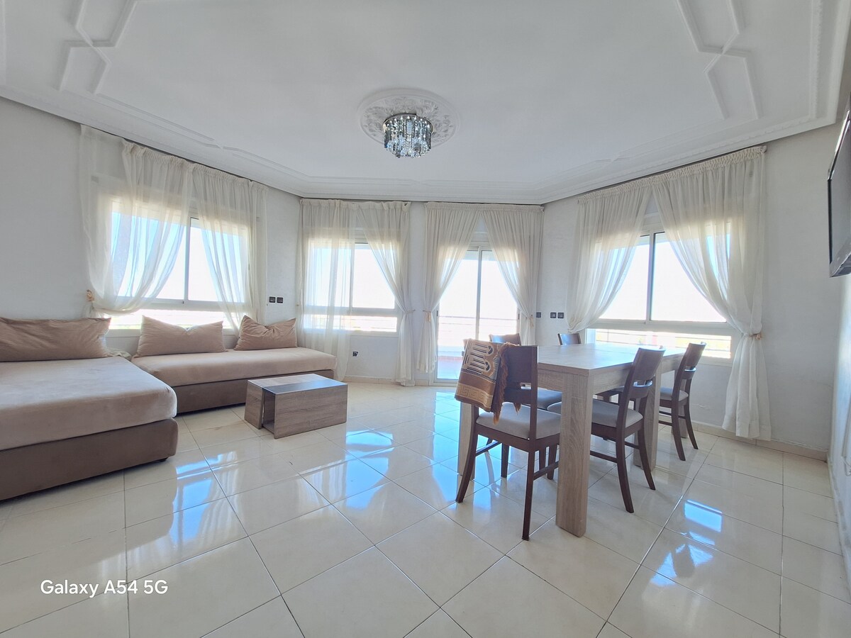 Experimente uma verdadeira escapadela à beira-mar, no coração do centro da cidade, neste espaçoso apartamento de 3 quartos com vista para o mar, com uma garagem privada e uma localização imbatível na Marina Bay Corniche de Tânger. O que vai adorar: • Acesso direto aos passeios da Corniche. • 135 m² de puro conforto • Wi-Fi rápido e Smart TV • Garagem privada (raro nesta região!) • Cozinha totalmente equipada • Acesso fácil a táxis e transportes públicos O apartamento oferece o melhor estilo de vida de Tânger, perfeito para famílias e amigos que procuram descobrir a cidade.