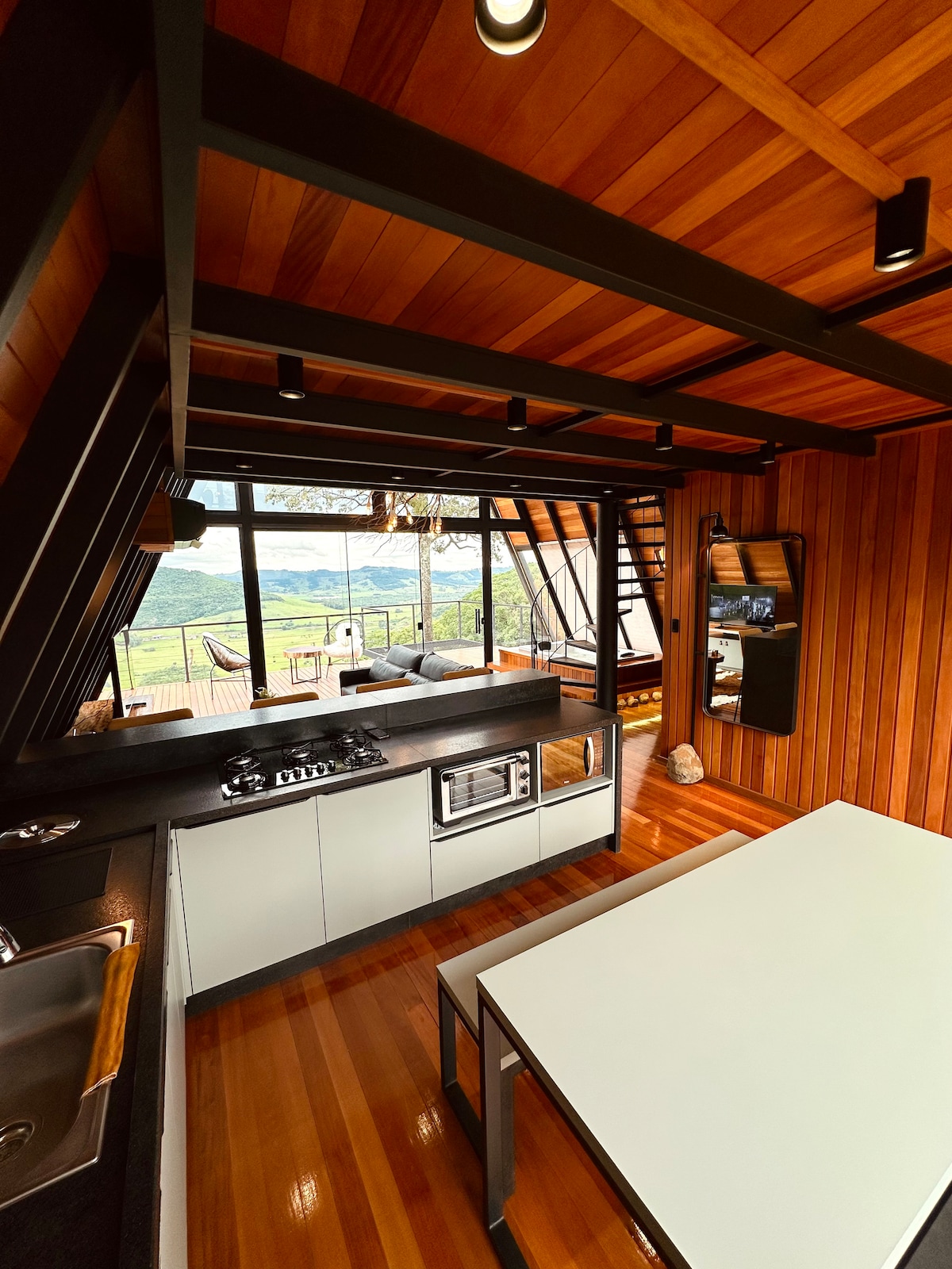 A MoonValle é uma cabana A-frame pensada para casais que buscam dias de descanso e conexão com a natureza. Com vista para as montanhas, banheira de hidromassagem e uma decoração que mescla o moderno ao retrô, ela oferece o cenário ideal para desacelerar. A estadia inclui calefator, ar-condicionado, cozinha equipada, churrasqueira portátil, firepit na área externa e wi-fi. Para tornar a chegada ainda mais especial, oferecemos uma cesta de boas-vindas. E sim, seu pet é muito bem-vindo!