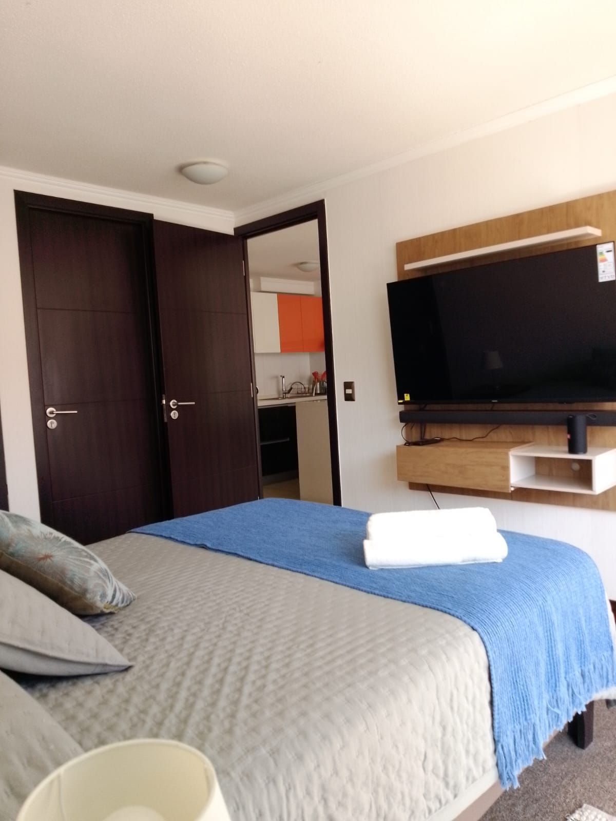 Venha desfrutar de um belo pôr do sol em frente ao mar. Apartamento com um quarto e sofá-cama para 3 hóspedes confortáveis. Com tudo o que precisa para se sentir em casa. Cama king size, fogão vitrocerâmico, máquina de lavar roupa, frigorífico, micro-ondas, TV de 55 polegadas, Wi-Fi, terraço, piscina e estacionamento gratuito. Localização imbatível na península de Cavancha, a 200 metros da praia com o mesmo nome e em frente à praia Brava. Perto de supermercados, centro comercial e a poucos passos de bares, pubs e cafés.