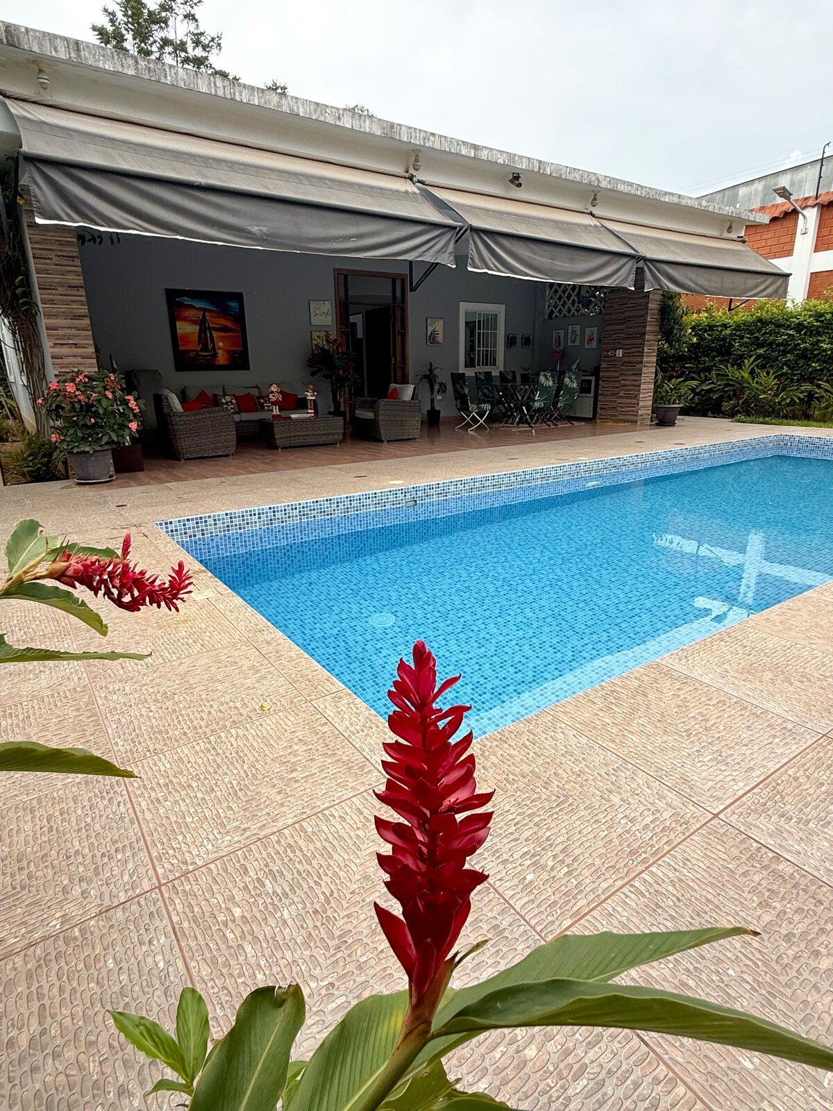 Encanto y tranquilidad, es lo que define a está acogedora, amplia y cálida casa con una súper piscina, rodeada árboles, jardines y grandes áreas verdes. Ubicada a sólo 8 minutos de la plaza de Tarapoto. Villa Libertad es el lugar ideal para desconectarte del bullicio de la ciudad y vivir la naturaleza. Aquí podrás disfrutar de momentos mágicos en familia y entre amigos. Cuenta con una hermosa piscina privada, columpios, espaciosa terraza y zona de parrilla. Así cómo una amplia cochera interna.