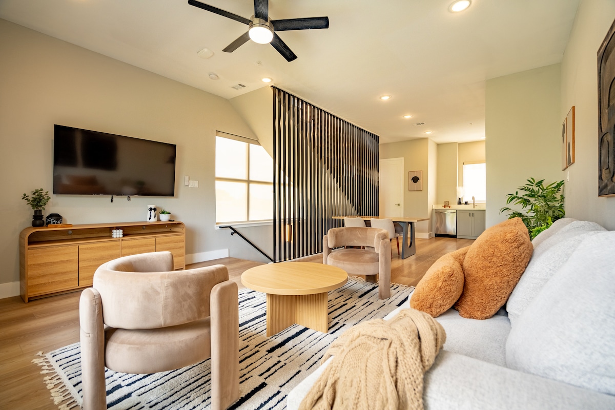 Duplex moderno de 2 quartos • 4 milhas do Estádio AT&T • 6 hóspedes