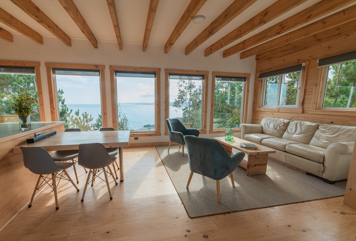 Esta cabaña se ubica en la hermosa playa de Cobquecura con espectacular vista a sus interminables kilometros de costa que incorpora el cautivador Santuario de la Naturaleza conocido como Lobería, a solo minutos de la imperdible maravilla rocosa denominada Iglesia de Piedra y la encantadora playa de Buchupureo con sus olas continuas de fama internacional que invitan a la práctica de deportes naúticos como el surf. Todo lo anterior más el verdor de sus bosques se transforma en un escenario ideal.