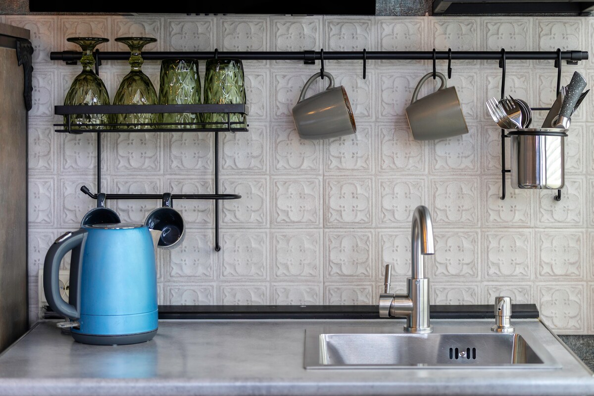 Novos quartos tipo hotel no centro da cidade. Com banheiro. Há uma geladeira pequena, bule de chá, secador de cabelo. Sem cozinha. Smart TV, Internet rápida Você pode usar a máquina de lavar e secar roupa. Daqui, você pode caminhar até todas as atrações de Tbilisi. Há muitos cafés da moda, restaurantes e bares, bancos, supermercados, salões de beleza... contra a maravilhosa fábrica de vinhos