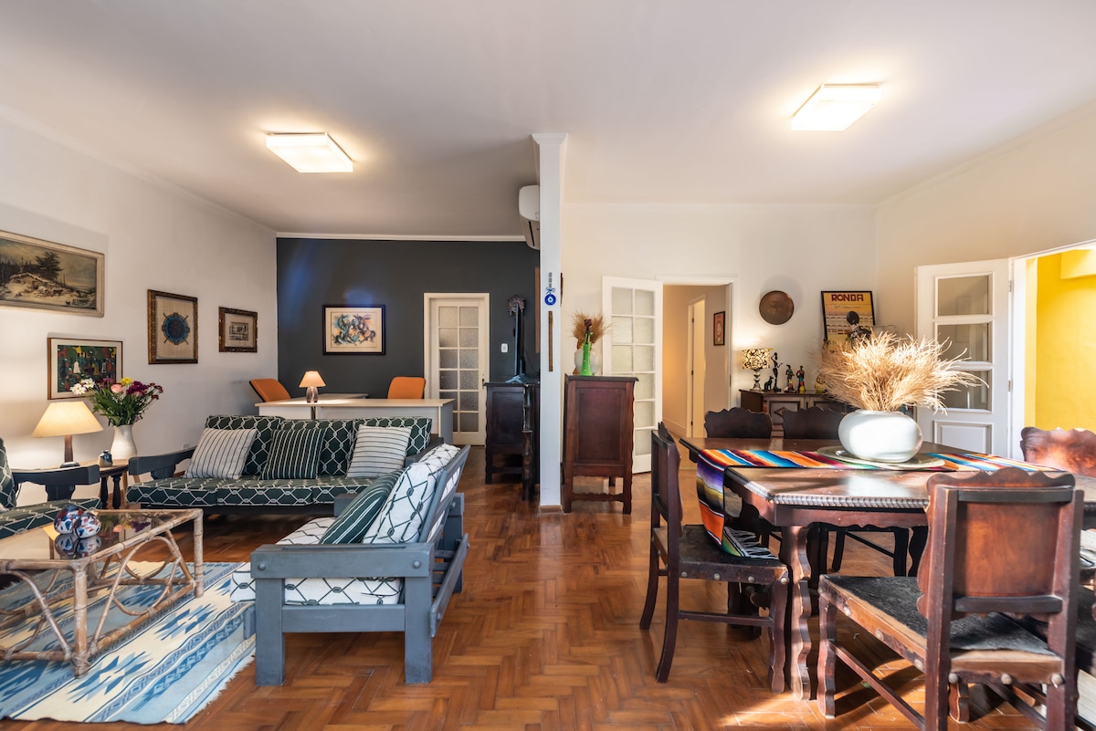 Disfrute do Apto inteiro: Quarto(1) Stilo Home-Ofice, escrivaninha c/cadeira ergonômica, cama de casal, frigobar com acessórios e total privacidade com tranca e chaves; Quarto (2) Stilo Home-Office, escrivaninha c/cadeira ergonômica 2 Camas solteiro Pelatis, 1 Sofá Solteirão.Apto aconchegante, todo equipado, proximo de tudo que HIGIENOPOLIS oferece: Metro Sta Cecilia e Mackenzie,Ônibus,Shopping Pateo Higienópolis, Bares,Restaurante para todos os gostos e bolsos, Superm, Hospitais, Farmácias etc