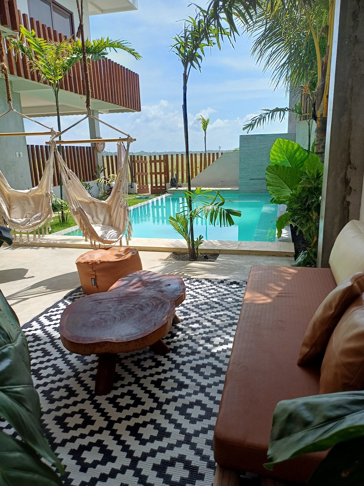 Relaxe e desfrute da nossa casa completa com piscina privada, pátio e jardim tropical nos Bonsai Bungalows. Projetámos e fizemos à mão grande parte da nossa casa, desde os móveis aos móveis e com tudo o que precisa para uma escapadela relaxante perfeita na praia. Cozinha bem equipada, área de refeições, lounge com sofás, quarto separado com cama king size, casa de banho e ar condicionado em ambos os quartos. Bem-vindo ao seu próprio jardim tropical privado fechado e casa com piscina e área de descanso.