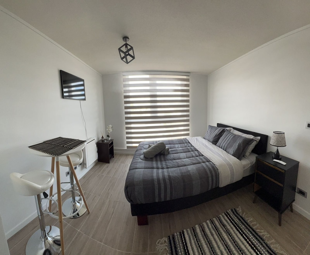 Para uma melhor experiência, recomendamos que você leia com atenção os pontos descritos abaixo: Bem-vindo ao nosso acolhedor estúdio no coração de Valdivia, a poucos passos da praça, dos dois shoppings da cidade, das principais lojas de varejo e dos arredores encantadores. Desfrute da bela orla costeira, a poucos passos de distância. Além disso, você terá tudo o que precisa ao seu alcance: bancos, supermercados, restaurantes, museus, bares e discotecas.