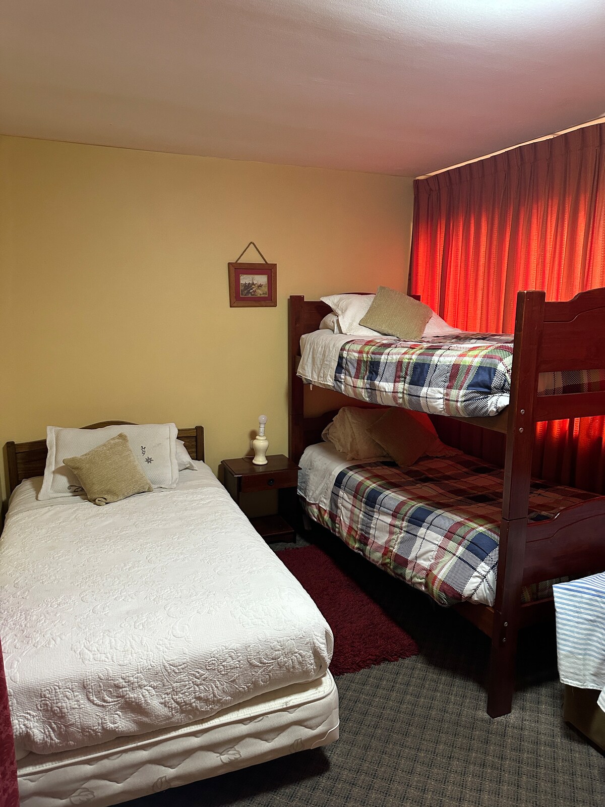 Cómoda habitación para 2 personas, camas individuales, con desayuno incluido, a pasos del Rodoviaro (terminal de buses intercomunales) de Temuco. Tiene 2 baño completos que son compartidos con otras habitaciones.