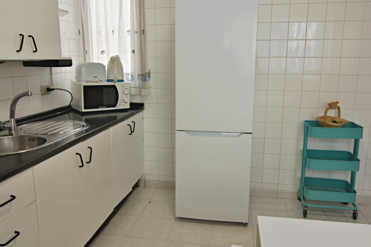 Apartamento para 5 personas con 2 habitaciones. La principal con 1 cama de matrimonio y otra con 2 camas individuales, zona común con sofá cama y disponible cuna para bebés si fuera necesario. Cocina equipada. Lavadora, secador de pelo y plancha para la ropa. Todo lo necesario para una estancia cómoda. Suministramos toallas y sábanas. Dispone de terraza privada con mesa, sillas y hamacas. Wifi y TV satélite.