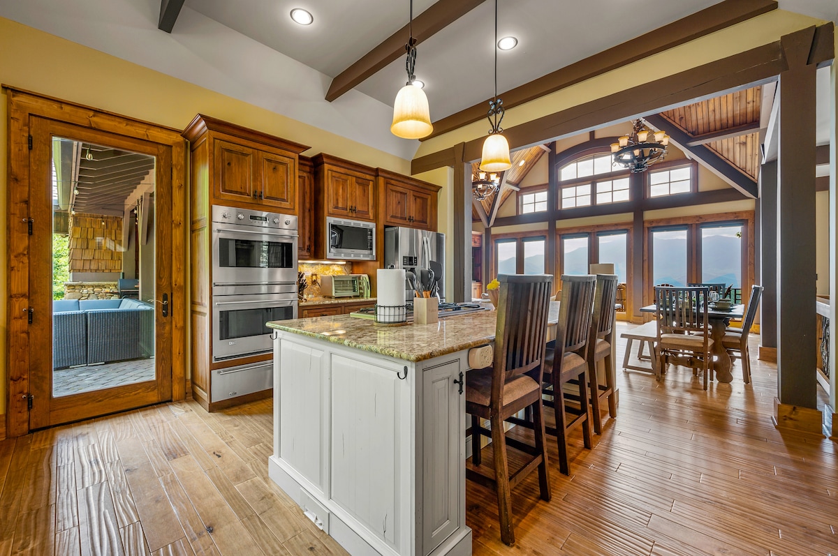 Aproveite o esplendor e a beleza do GSM a partir das alturas da nossa casa recém-construída de 5 quartos/5 casas de banho. A casa mais alta da subdivisão fechada com vistas deslumbrantes para a folhagem de outono. Manhãs de waffles com passeios panorâmicos à tarde que terminam numa noite de outono acolhedora no deck junto à mesa de lareira ou reunidos em redor da lareira. Cozinha gourmet totalmente abastecida. Banheira de hidromassagem de luxo para 6 pessoas, sauna panorâmica, cama de baloiço na varanda. Café/espresso e bar de waffles. Contemporâneo/rústico, venha ficar na sua nova casa longe de casa!