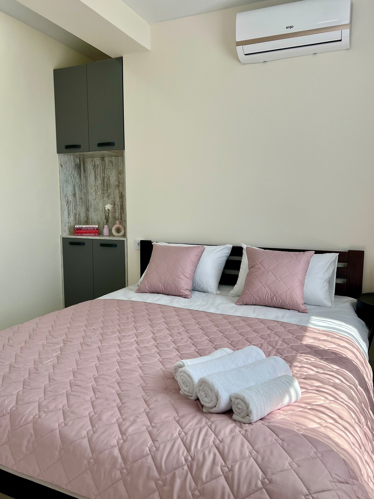 Apartamento com ar condicionado, casa de alta qualidade. Limpeza perfeita, no CORAÇÃO DA CIDADE. Perto da estação rodoviária, mercado. Há ESTACIONAMENTO, área e entrada sob vigilância por vídeo. Eletrodomésticos de alta qualidade. Cama de casal grande com um colchão ortopédico e um sofá que se dobra numa cama de casal, aquecimento individual, piso quente, roupa de cama branca e toalhas, produtos de higiene. A cozinha tem todos os utensílios e talheres necessários, Smart TV, Wi-Fi 100MB. Possível entrega para: SESSÃO DE FOTOS VIDEOZOMOK