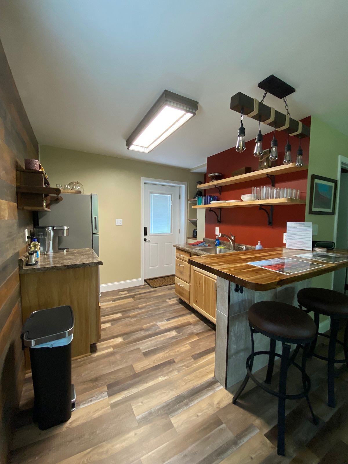Unidade decorada com bom gosto, perfeita para um retiro relaxante. Ótimo para casais, viajantes ou escapadelas de namorada! Unidade no rés-do-chão (unidade de 2 andares com piso superior disponível por um custo adicional, caso contrário, não alugado). Cama queen + sofá-cama. TV de 55 polegadas com Showtime. Cadeira de massagem. Internet disponível, mas irregular devido à localização rural. Grande banheira de hidromassagem privada e lareira rodeada por bosques e milho! Lenha fornecida sem custos. Além disso, uma nova sauna quando as temperaturas exteriores estiverem acima de 40°F.