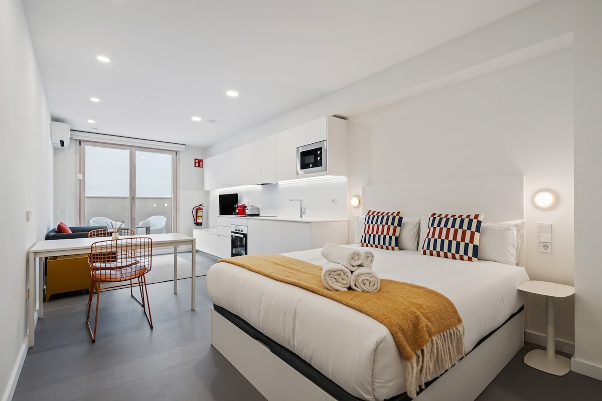 Bienvenido a nuestro estudio funcional y moderno en Madrid, situado a 10' a pie de la zona de Plaza Castilla, muy próximo al metro y autobuses. Este estudio minimalista cuenta con una cama de matrimonio y un cómodo sofá cama para un total de 4 personas, cuenta además con un espacio diáfano que ha sido diseñado para aprovechar al máximo la luz natural y la sensación de amplitud. Equipado con todo lo necesario para tu estancia, es el alojamiento perfecto para viajes de negocios o turismo.