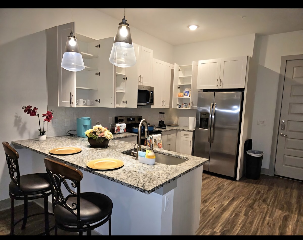 Entre no nosso retiro Frisco 2BR mais amado e sinta-se imediatamente em casa. Pode dormir até 6 pessoas numa cama king size super confortável, além de um beliche queen size, e terá 2 casas de banho completas para manhãs tranquilas. Pode fazer streaming em Smart TVs em todos os quartos, cozinhar na cozinha totalmente abastecida e começar o seu dia com café expresso, lattes ou cápsulas compatíveis com Nespresso no bar de café. Relaxe no pátio privado e desfrute da piscina e do ginásio partilhados.