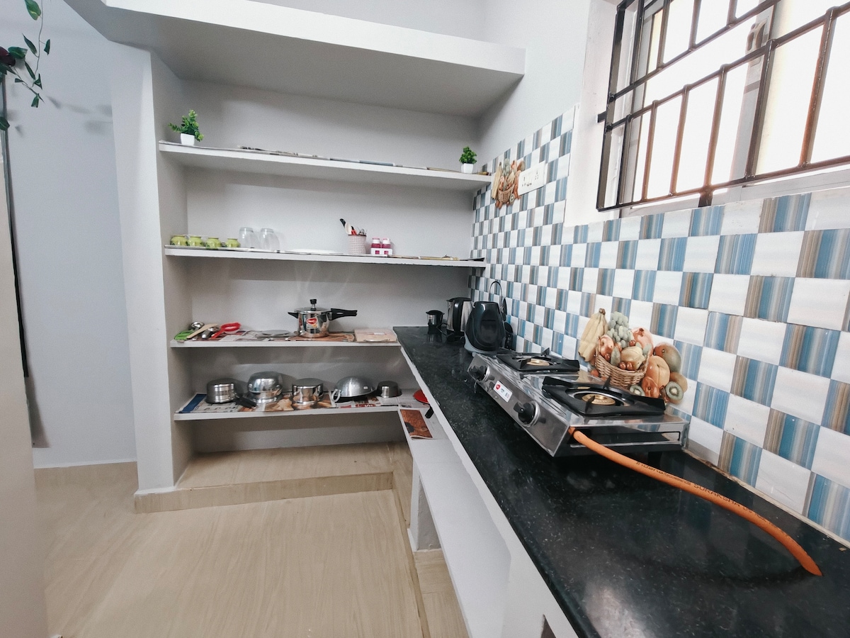 Experience comfort at our family-friendly ground-floor private house in Avadi, ideal for up to 4 guests. Enjoy Wi-Fi, a fully equipped kitchen with a refrigerator, gas stove, & geyser, an AC bedroom with a King Bed, two floor mattresses, and a Smart TV. A washing machine is available for your convenience. Relax in a serene setting close to Chennai’s key areas. Free parking and an office chair are included. No smoking, drinking, or unmarried couples allowed. Feel free, like home. You're Welcome!