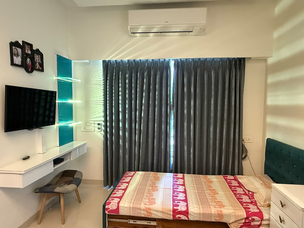 Experimente o conforto e a conveniência deste luxuoso 2BHK em Mira Road! 🌿 Desfrute de vistas para a piscina, o ginásio e a varanda numa comunidade fechada premium. Apenas a 5 minutos da estação de Mira Road e com acesso fácil ao Essel World, centros comerciais e restaurantes. Perfeito para famílias, casais e viajantes de negócios. Wi-Fi rápido, check-in autónomo e um ambiente tranquilo fazem desta a escapadela ideal em Bombaim. 🏡✨