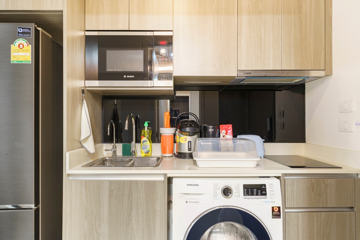 -40 m ² de um quarto com cozinha+ máquina de lavar roupa no Bangkok Tryp Building - Não é adequado para uma criança - Proibido Fumar/ Proibido Cannabis - Perto do BTS N4 Sanampao, saída#3 (7 minutos a pé) - Sala de estar com sofá/casa de banho privativa com chuveiro, secador de cabelo, produtos de higiene pessoal e toalhas -Air-con/Wifi/ TV/Cofre - Depósito de bagagem gratuito/Segurança 24 horas - Check-in e check-out fáceis/Espaço de estacionamento gratuito - Piscina e fitness *Os apartamentos estão em unidades de 2 a 4 andares, canto ou meio (depende da disponibilidade)