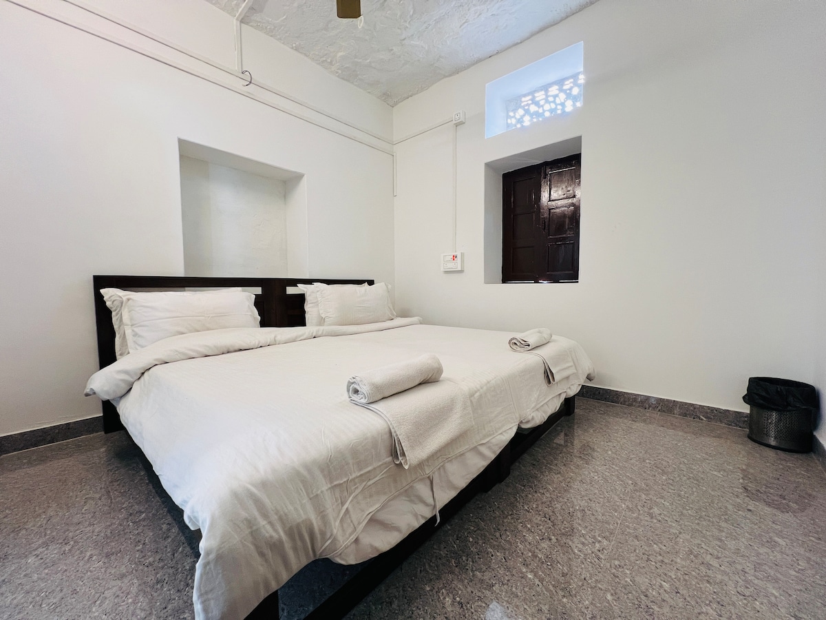 Desfrute de um quarto privado confortável com ar condicionado e uma janela encantadora com vista para a rua, perfeita para ver a vida colorida de Jaisalmer passar. Este quarto oferece conforto e uma sensação de ligação à Cidade Dourada lá fora. Principais características Com ar condicionado para um sono fresco e repousante Janela com vista para a rua e muita luz natural Cama de casal com lençóis limpos e frescos Casa de banho privada anexa com água quente e fria Mobiliário minimalista para uma estadia acolhedora e organizada