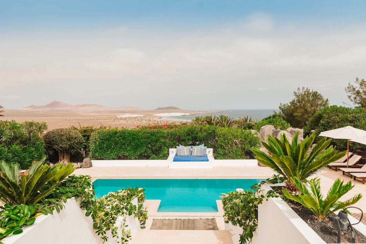 La Sala de Jardin - The Garden Room - um anexo de estúdio único e perfeitamente equipado para 2 pessoas com entrada separada própria e totalmente auto-suficiente. Com acesso direto a um belo espaço de jardim e piscina de água salgada aquecida por energia solar, medindo 7 m x 3,5 m. A energia solar da casa também. O jardim goza do cenário deslumbrante de um vulcão Lanzarote icónico. Muitas vezes, na encosta, verá a família local de cabras selvagens a brincar. Embora descrita como uma casa pequena pela airbnb, este espaço não é apertado.