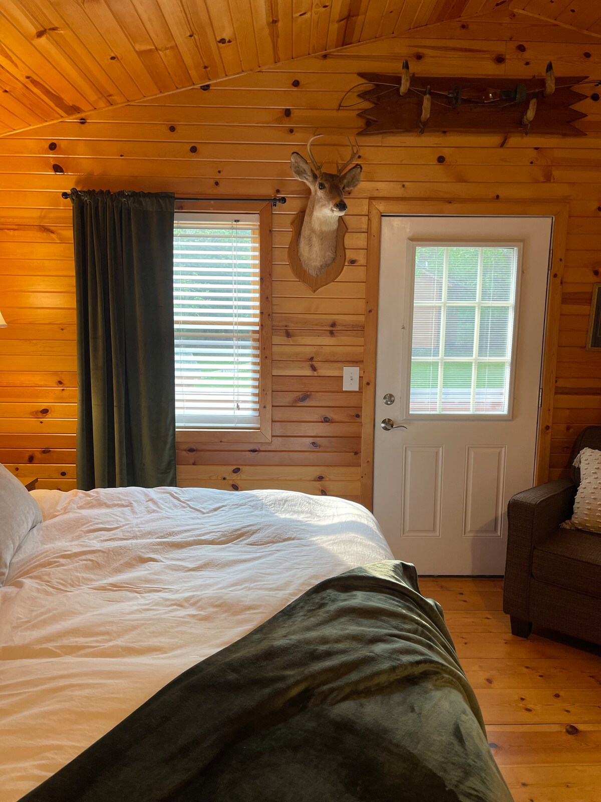 Bem-vindo à nossa casa: onde encontramos paz e relaxamento há mais de 20 anos. Um nativo alemão, Big R se apaixonou pela terra aberta e colinas de Wisconsin, tornando-se um cidadão dos EUA nos anos 80. Ele conheceu Curly, uma garota da cidade de Chicago, que trouxe um pouco da cidade para sua vida no campo. Eles gostam de criar búfalos e passar dias mais quentes em sua varanda, aproveitando o ar fresco e belas vistas (sem mosquitos!). Agora eles querem compartilhar sua casa idílica e pacífica com você. Dirija por uma estrada sem saída e pare em uma cabana rústica cheia de comodidades de alta tecnologia e aconchegantes. Temos algo para todos com uma lareira a gás, TV (completa com prato, Cinemax, HBO e um sistema de som Bluetooth), jogos de tabuleiro e uma cozinha completa. Tome uma bebida lá fora para mergulhar na banheira de hidromassagem ou sente-se ao redor da fogueira. Quando o dia acabar, você vai adormecer instantaneamente na cama de espuma de memória, seja no loft ou no quarto, e acordar com um belo nascer do sol olhando para o seu pequeno refúgio.