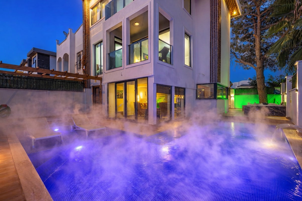 Esta vila privada está perto o suficiente de todos os pontos importantes da área de Antália e facilita o planejamento da sua viagem. A 1 passo da piscina, a 2 minutos do Land of Legends, a 5 minutos do mar e a 25 minutos do aeroporto de Antália; umas férias luxuosas, confortáveis e tranquilas. Minha vila tem uma piscina, sauna e banheira de hidromassagem, que podem ser usadas durante todo o ano. Como minha piscina tem um sistema de aquecimento, você pode desfrutar da piscina ao ar livre, mesmo que você planeje um feriado no inverno.