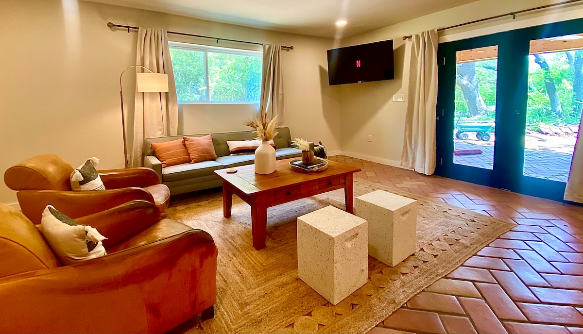 This recently built 2-bedroom, 2-bath San Antonio vacation rental is the perfect home base for a relaxing retreat with family or friends! This home features FREE Level-2 EV (CCS) charging, 3 Smart TVs & a fully equipped kitchen. Sip your coffee from the deck & enjoy the lake and plumeria garden views. Hike local trails before heading out for shopping/sightseeing. *** Ask us about booking our optional retreat space** Please note: This property is on the 2nd floor & requires stairs to access.