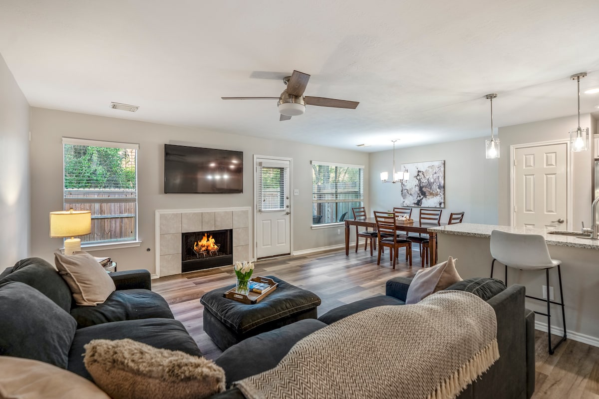Aceitamos animais de estimação! Confortável e descontraído: 3 quartos e 2 casas de banho completas tornam-no perfeito para famílias, casais ou amigos que viajam juntos. Luminosa e acolhedora: a casa apresenta um layout de sala de estar aberta, fácil de reunir, descontrair e criar memórias. Localização privilegiada: a poucos minutos do centro da cidade de Woodlands, restaurantes, entretenimento, trilhos naturais e escolas de topo. Espaço exterior: um lote generoso oferece um quintal para desfrutar do café da manhã, conversas à tarde ou smores à noite em redor da lareira.