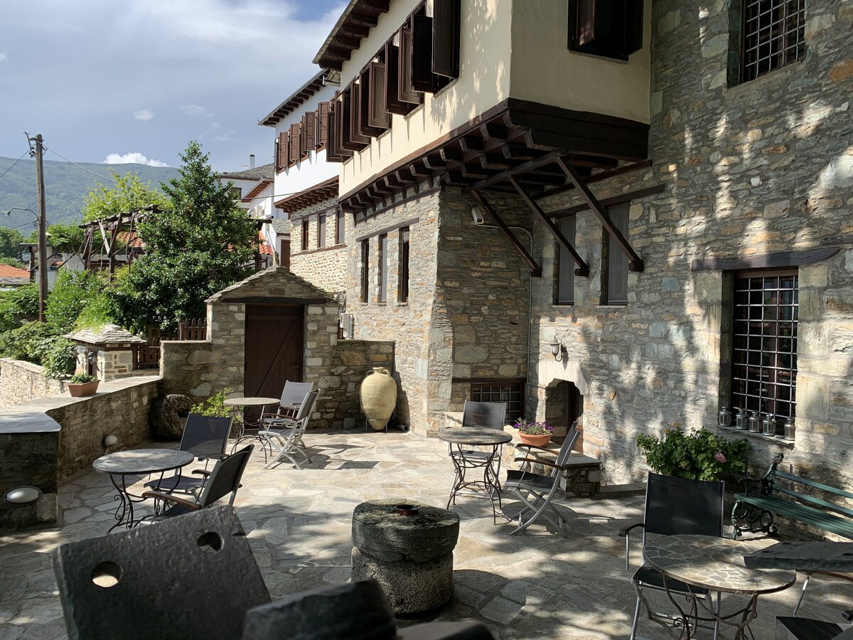 O quarto é para 2 hóspedes e, se necessário, pode acomodar totalmente 3. Faz parte de um hotel boutique e tem casa de banho privativa, vista para o mar, frigorífico, varanda grande, ar condicionado, água potável, a 3 km do mar, estacionamento gratuito. O hotel oferece restaurante, bar, lounge, churrasqueira, lareira. Supermercados a 2 minutos a pé. 1,5 horas de carro do aeroporto de Tessalónica. Desportos ao ar livre disponíveis, caminhadas, surf, canionismo, caiaque, passeios a cavalo.