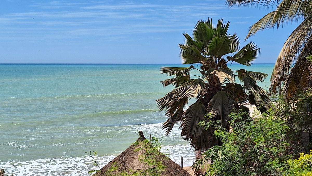 Num refúgio tranquilo, entre a piscina e o oceano, esta casa totalmente equipada com 3 quartos com ar condicionado, com casas de banho privativas espera por si. Acesso directo à praia. O seu jardim florido vai colar cores ao som das ondas. Área de churrasco e forno a lenha recentemente mobilado e coberto e, se desejar, peixe fresco é entregue à sua porta pela manhã. Segurança 24 horas por dia, 7 dias por semana, limpeza diária e fazer pratos senegaleses de vez em quando. Outra forma de viver a pequena costa.