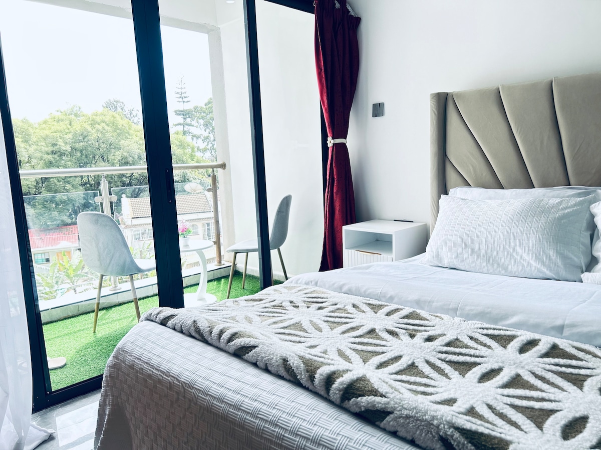 Este deslumbrante apartamento de um quarto oferece uma mistura de sofisticação moderna e estilo Boho terroso. Situado na vibrante zona de Westlands, em Nairobi. A 400 metros do prestigiado GTC Mall e do JW Marriott Hotel, colocando as compras e o entretenimento ao seu alcance imediato. O apartamento fica a uma curta distância a pé do Sarit Centre. O edifício dispõe de todas as comodidades, que incluem: Wi-Fi de alta velocidade Segurança 24/7, check-in autónomo Cozinha totalmente equipada Casa de banho luxuosa Energia de reserva Ginásio no terraço