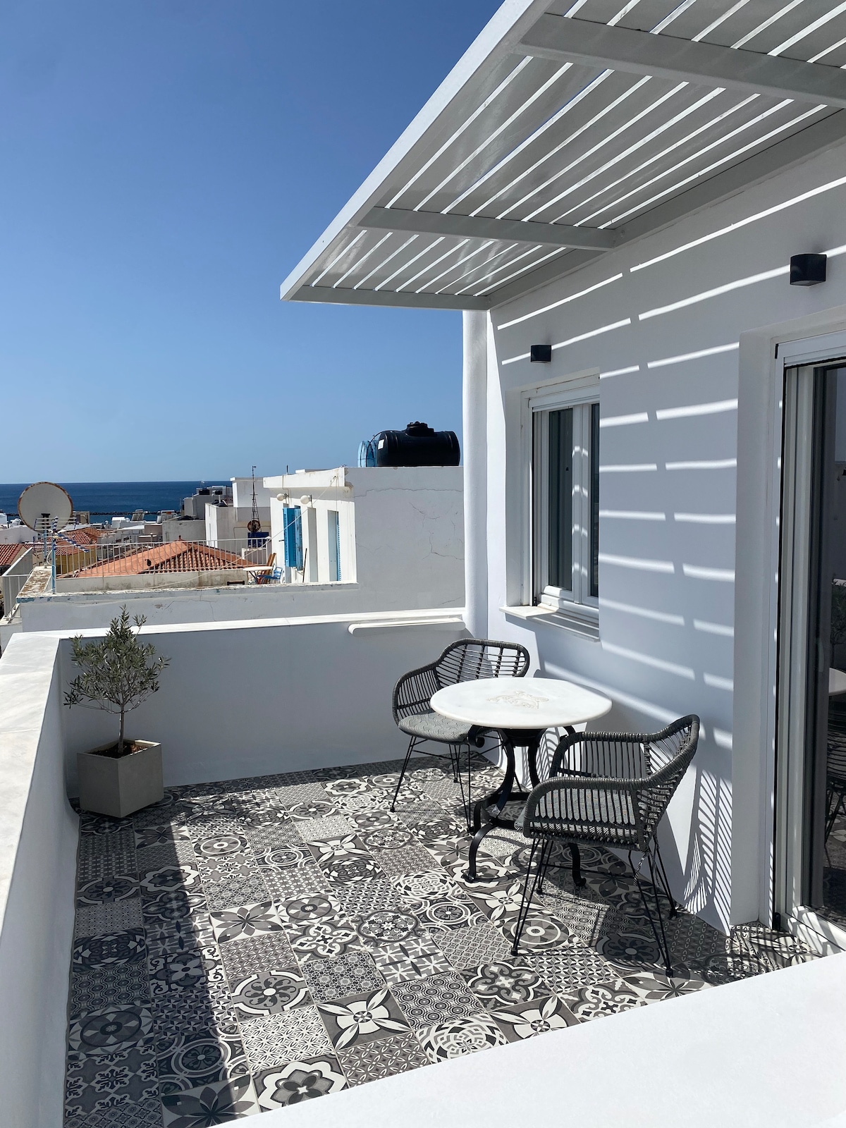 Apartamento do primeiro andar de estilo tradicional cicládico com jardim no telhado, no coração do povoado de Parikia, para 4-7 hóspedes. Com uma localização ideal, oferece tranquilidade e relaxamento e uma localização central conveniente. A uma curta distância: toda a vista interessante (mercado antigo, castelo franco), padaria, lojas, o porto, a estação rodoviária e o ponto de táxi. O mar fica a poucos metros da casa e, em 2 minutos, pode chegar à rua à beira-mar, onde pode desfrutar da vista para o pôr do sol.