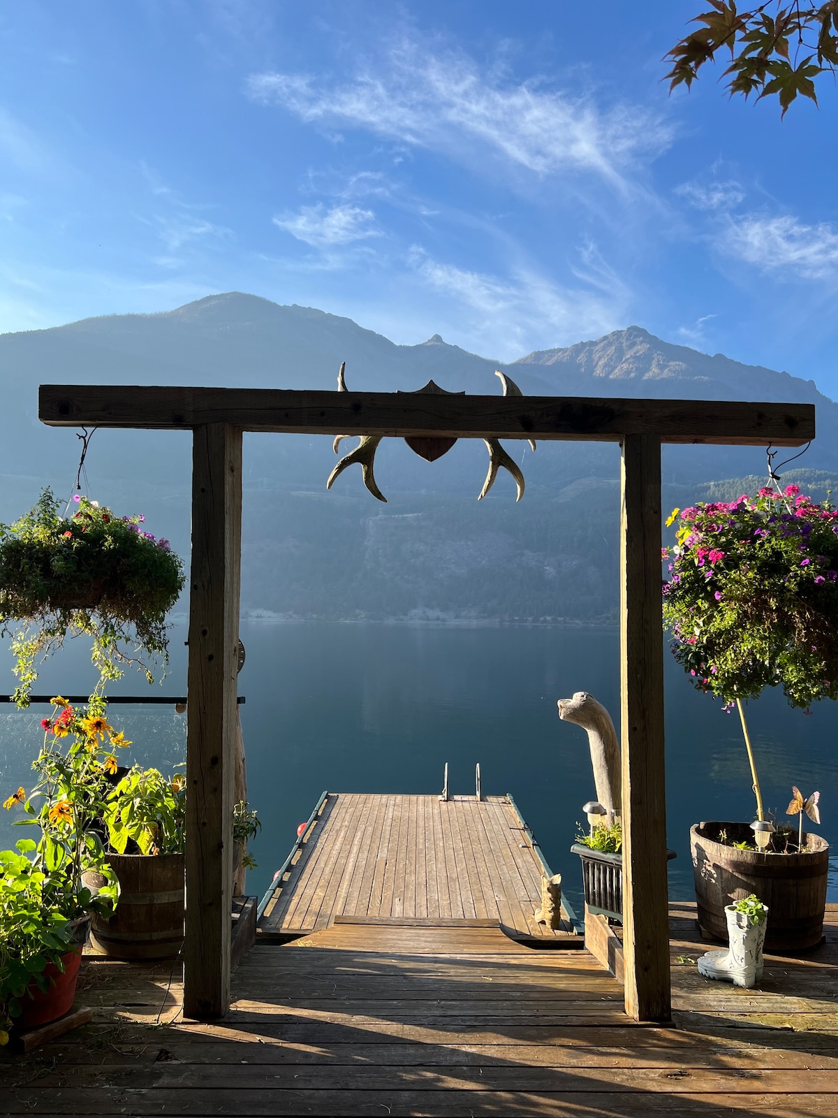 Bem-vindo a Barney Bay em Anderson Lake, Colúmbia Britânica, Canadá. Vistas deslumbrantes do lago e da montanha glaciar em sua própria baía privativa - uma experiência de férias fora da grade. Água cristalina para pesca, passeios de barco, stand up paddle, natação e esportes aquáticos. Acessível por um barco de 5 minutos ou voar de helicóptero, hidroavião ou trazer seu próprio barco. Esta propriedade possui duas cabanas, muita vida ao ar livre com mais de 5000 pés quadrados de convés e uma sauna a lenha, além de chuveiro ao ar livre.