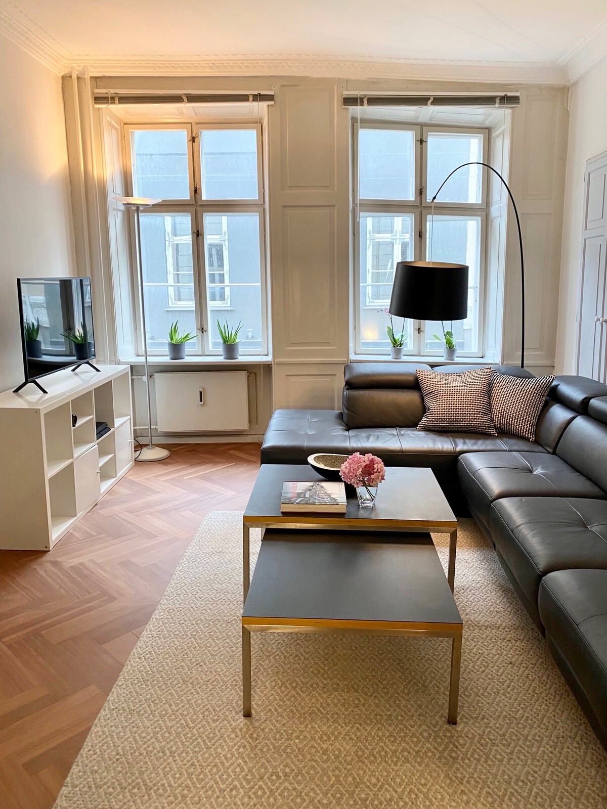 Desfrute de um apartamento espaçoso no coração de Copenhague. Localizado perto de Kongens Nytorv, o jardim Kings e a poucos passos da principal rua comercial, "Strøget". O apartamento recentemente renovado dispõe de dois quartos grandes com uma cama king size e uma cama queen size. Lembre-se de que o apartamento está localizado diretamente no centro de Copenhague, o que significa que é animado à noite, especialmente nos fins de semana. As janelas de painel duplo ajudam muito, mas às vezes ainda pode ficar barulhento.