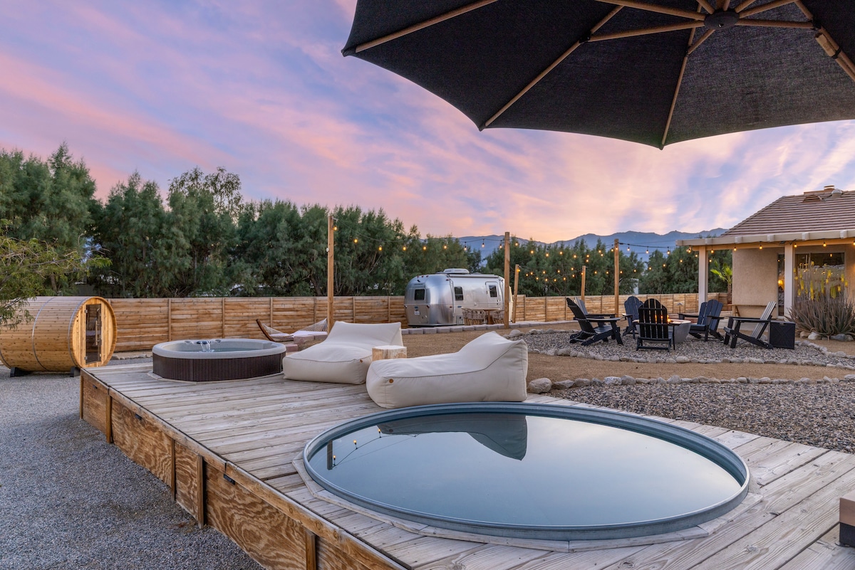 O Desert Moon apresenta todas as comodidades exclusivas que se tornaram populares na vizinha Joshua Tree, mas a 10 minutos de carro das cidades populares de Palm Springs ou Palm Desert. Fora do caminho batido da autoestrada, quando o seu grupo chegar, terá 1 acre de privacidade para experimentar os seus sonhos no deserto. Mergulhe na piscina de cowboy de 10 pés ou relaxe na banheira de hidromassagem sob as estrelas. O interior foi concebido por uma equipa Airbnb Plus e equipado para proporcionar conforto. Licença do condado de Riverside: RVC-1300