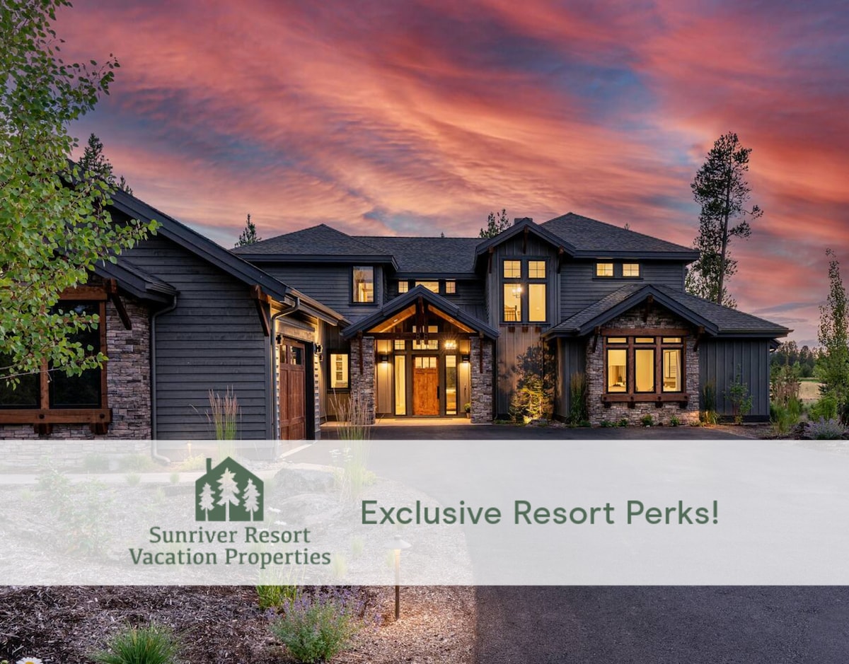 Welcome to 2 River Road. This custom built home is 4,490 sq. ft. and features 4 bedrooms and 4.5 bathrooms, comfortably accommodating up to 8 guests. This home is sure to exceed expectations and is one of the few that offer a private hangar for those flying directly into the Sunriver Airport. Whether you're arriving by plane or simply seeking a luxurious getaway, this stunning retreat provides unparalleled comfort and breathtaking surroundings.
