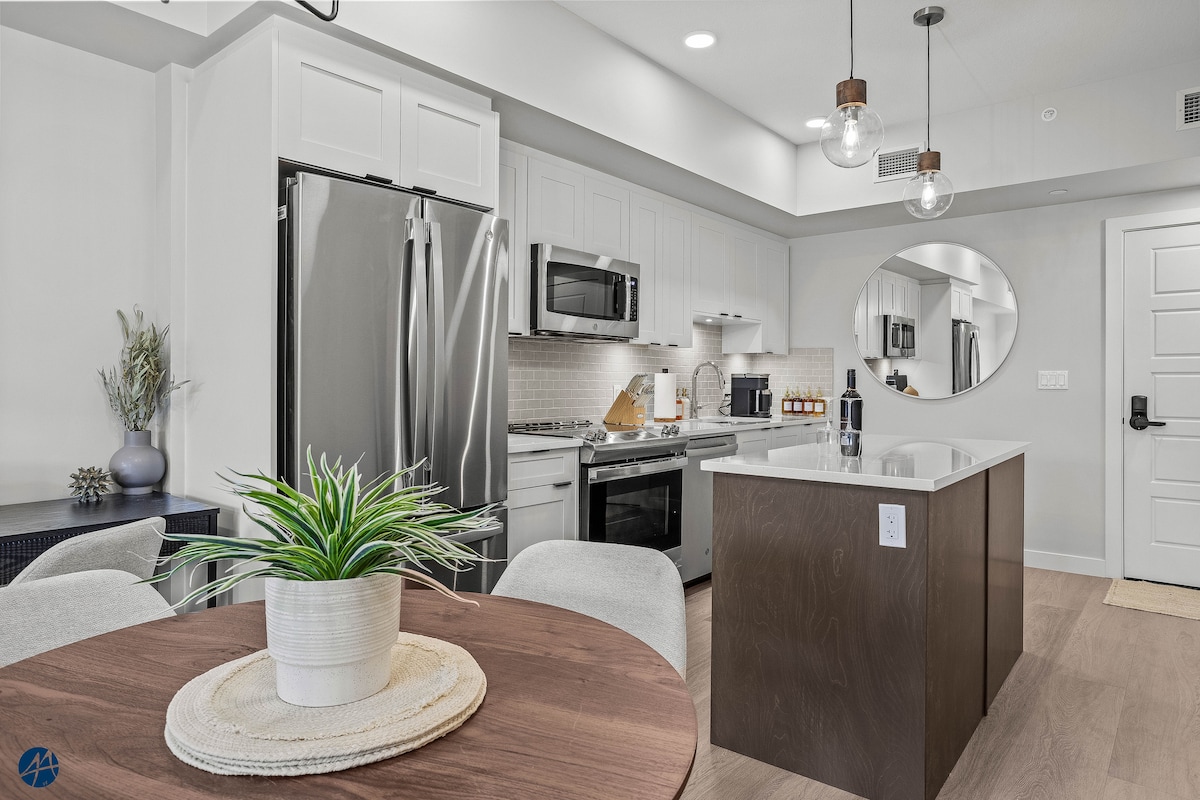 Blue Moose is a newly updated and furnished, spacious luxury one-bedroom condominium with king -sized bed and queen sofa bed. New for 2025: major bathroom and kitchen upgrades. PERFECT LOCATION This modern mountain retreat is situated next to a pristine mountain creek. Follow a creekside nature trail and within minutes you are in downtown Canmore with trendy shops, cafes, food trucks, and both casual and upscale dining.