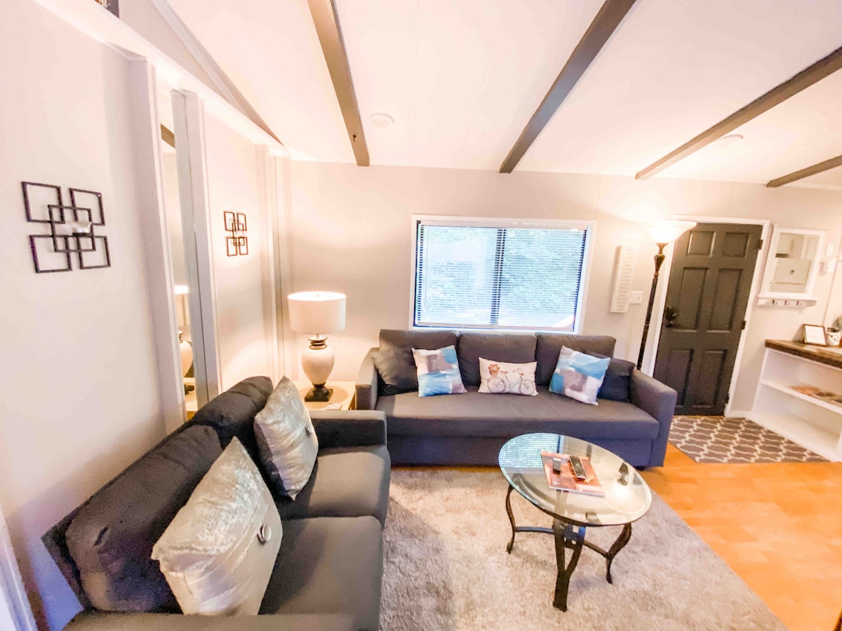 Nosso apartamento estúdio luminoso e aconchegante tem tudo o que você precisa enquanto explora tudo o que Olympia e PNW têm a oferecer. Este espaço recentemente renovado tem uma cozinha pequena, mas eficiente, incluindo um espaço de refeições. Sofá confortável e TV a cabo, banheiro atualizado e cama Queen size com lençóis premium. Cortinas blackout. Auto check-in, vaga de estacionamento coberta privativa diretamente em frente à unidade. Sem escadas - 1 pequeno degrau para entrar na unidade. Perto do Capitólio, do Hospital Providence e do Estado Evergreen.