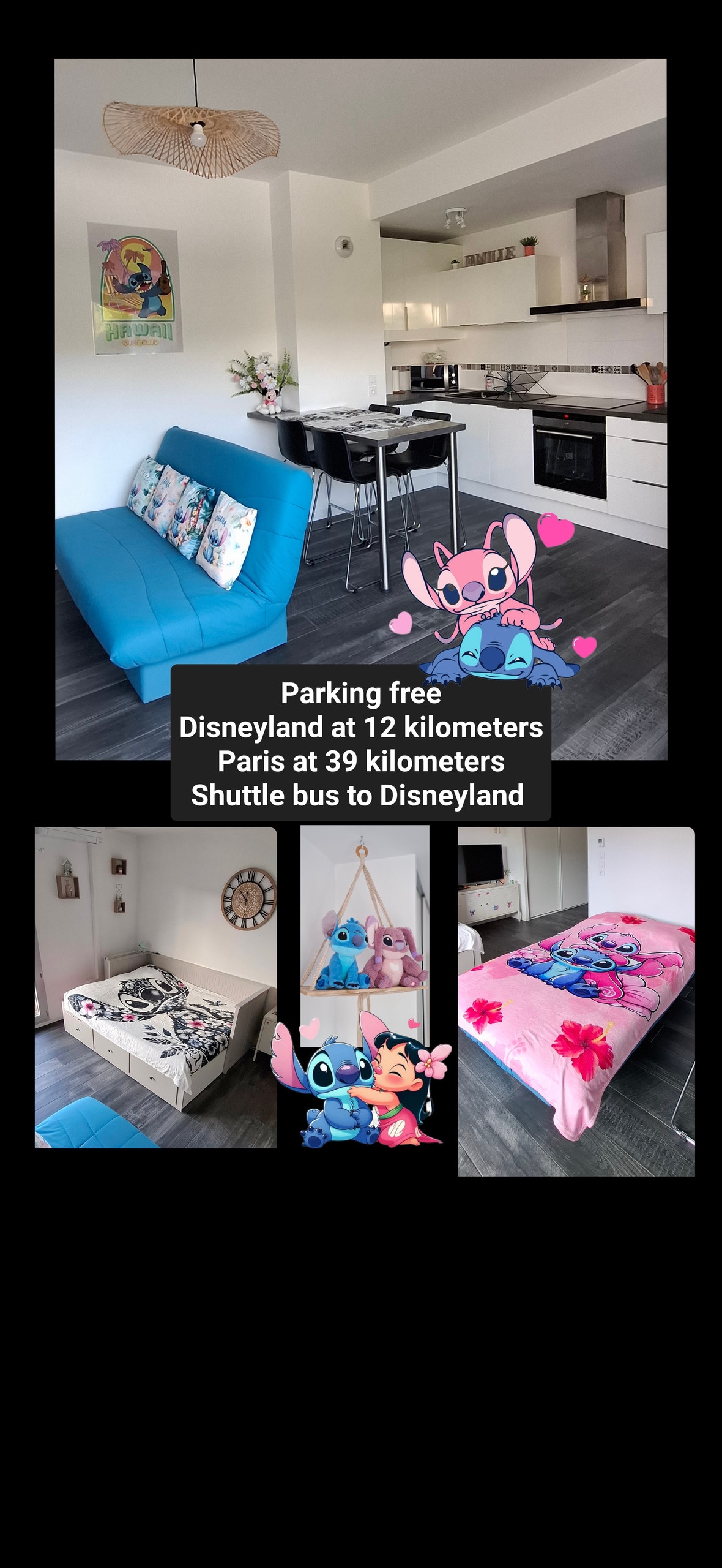 MAGNÍFICO APARTAMENTO NOVO MUITO PERTO DA DISNEYLAND 😃 Roupa de cama nova. Sofá-cama da sala de estar trocado em 23 de fevereiro de 2025, incluindo um colchão de 18 cm para uma ótima qualidade de sono. 2 vagas de estacionamento gratuitas no estacionamento privativo do prédio. Parada de ônibus (linha 19 Meaux-Marne la Vallée Chessy) a 2 minutos a pé. Perto da Disneyland Paris, da Vallée Village e da Village Nature. Toalhas e roupa de cama fornecidas no local e sem custo adicional.
