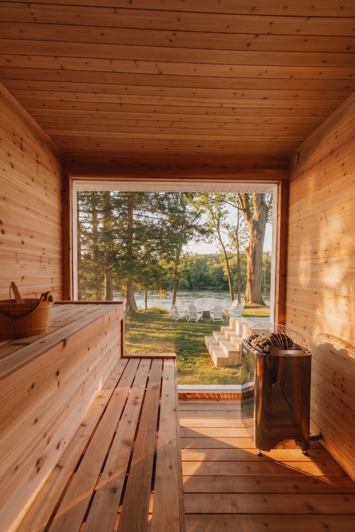 Luxo à beira-rio: banheira de hidromassagem, sauna e ginásio