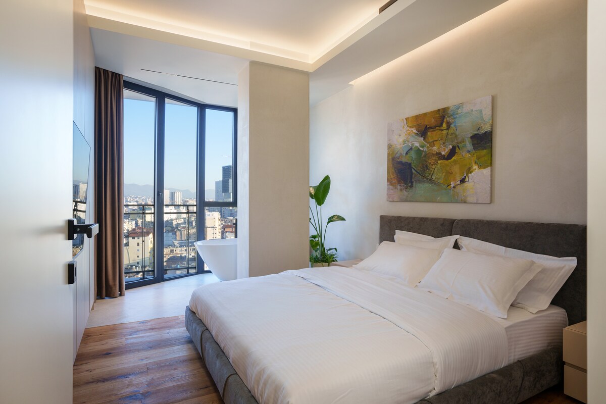 Elegante apartamento no último andar na vibrante Blloku, perfeito para até três hóspedes. Desfrute da decoração de bom gosto e comodidades modernas: ar condicionado, smart TV, cozinha totalmente equipada, máquina de lavar louça, máquina de lavar roupa e uma varanda encantadora. Delicie-se com o conforto de um banheiro espaçoso com um chuveiro separado e uma banheira independente. A poucos passos de bares, restaurantes e do Lago Tirana, com fácil acesso à estação de ônibus, estacionamento pago, academia e supermercado. Sua base ideal para descobrir Tirana!