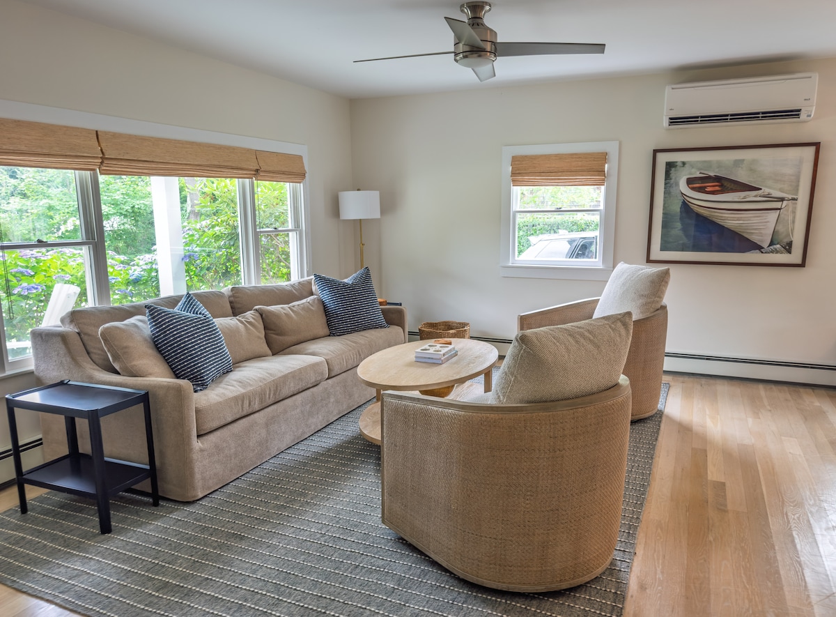 * Pátio privativo do jardim: mesa e cadeiras, churrasqueira a propano, lareira a propano e chuveiro ao ar livre fechado * 10 minutos a pé até os restaurantes e boutiques de Edgartown * TV a cabo, serviços de streaming, Sonos * Wi-Fi de alta velocidade, espaço de trabalho confortável no quarto * Portas de carregamento USB no BR e LR * Cozinha pequena, mas poderosa, totalmente abastecida para refeições caseiras * Produtos de banho orgânicos e locais * Jogos de tabuleiro e uma pequena biblioteca * Pisos de madeira, eletrodomésticos SS Bosch, DW, W/D, HVAC