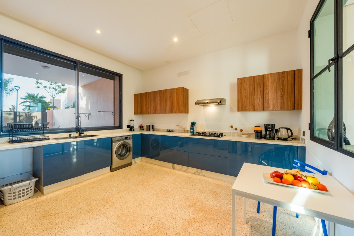 ✨Villa Inès: Elegância pura✨ 💎 Pequeno-almoço GRÁTIS todas as manhãs! 🏊 Piscina Aquecida (7x4m) num vasto jardim. 🏸 Voleibol, Badminton e Pingue-pongue. 🏡 Condomínio seguro 24/7, 15 min do centro e 5 min do Golfe. 👩🍳 Governanta e Chef privado para as suas refeições. 🛏 4 Suítes King de luxo, TVs com Netflix, IPTV. 🚿 Duches italianos, toalhas macias e secador de cabelo. 👶 Kit bebé completo (Berço, carrinho, cadeira alta). ✨A arte de viver em Marraquexe.✨Envia-nos uma mensagem!