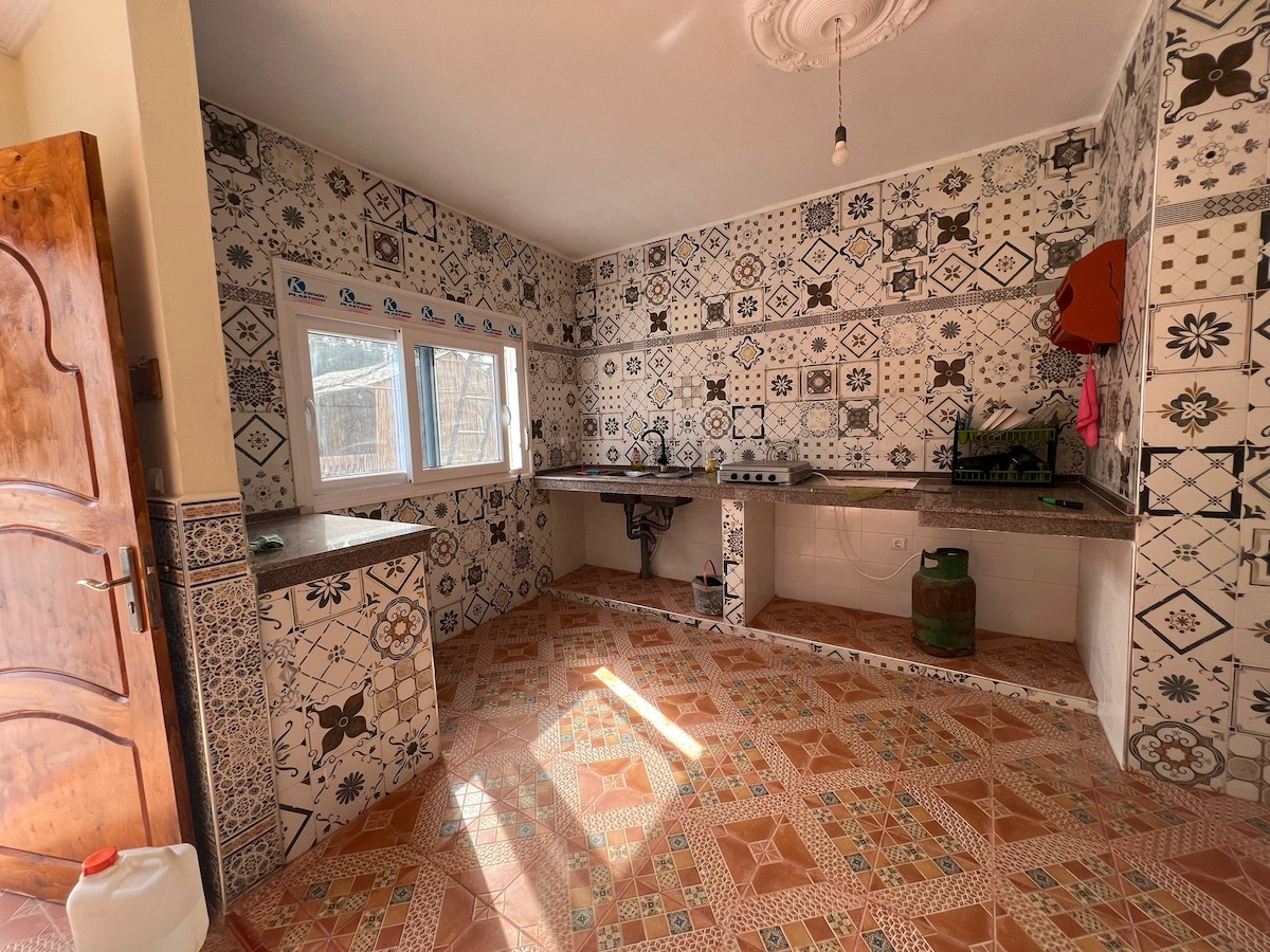 Esta casa de família localizada no centro da cidade perto de todas as comodidades necessárias (loja de conveniência,mercado , restaurantes,boutiques ,várias lojas...,hammam ,farmácia ,hospital ) Assim, as acomodações equipadas com todos os confortos ( TV,cozinha, chuveiro, cama queen...) Ar condicionado e aquecimento, Wi-Fi gratuito, estacionamento seguro gratuito, área de relaxamento e churrasqueira...no terraço //Perto de várias praias: B 'hira 19mn, Bekhata 15mn, Sidi-youchaa 30mn, Porsaile 40mn// Segurança e Absoluto Silencioso Garantido.