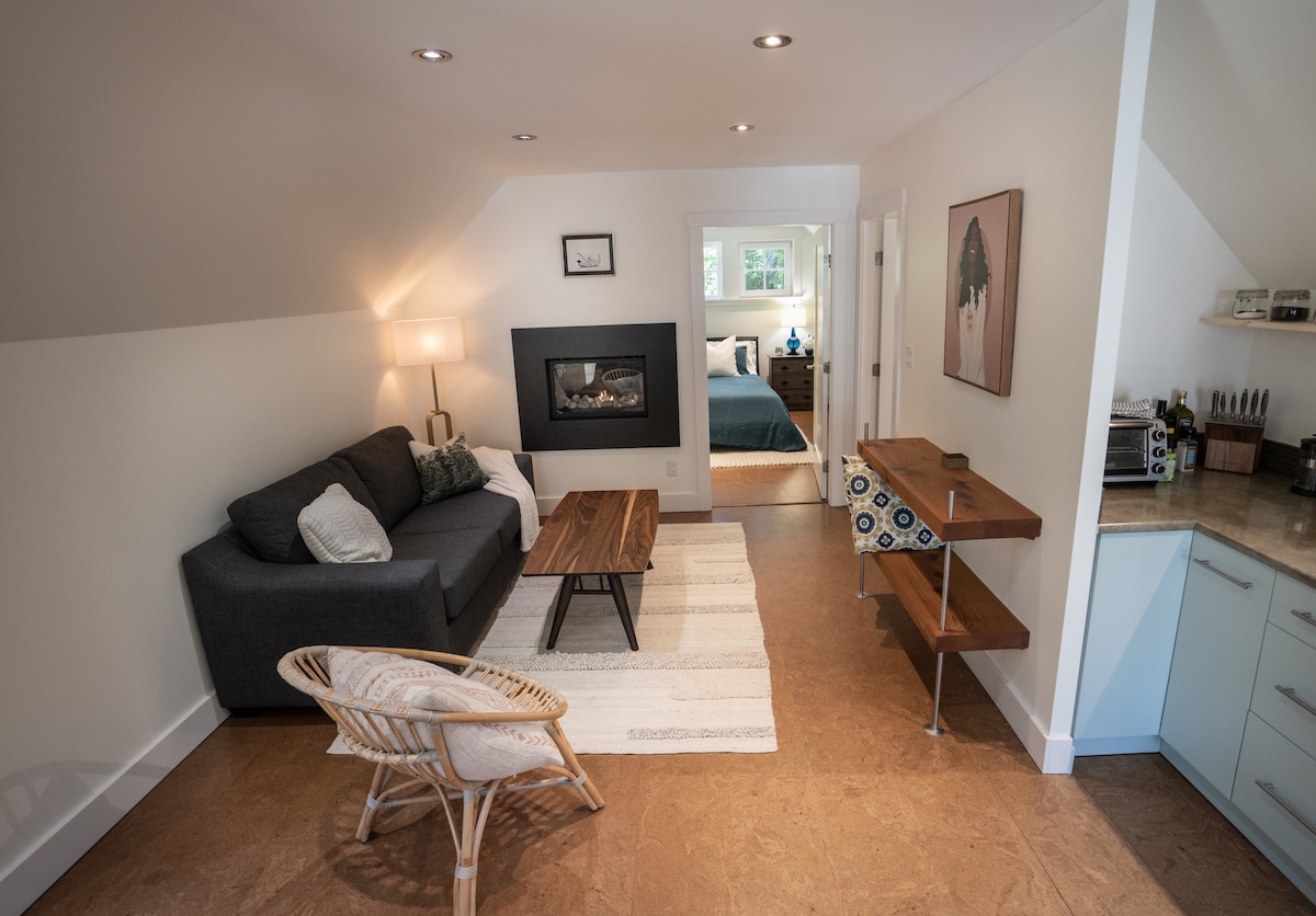 Favorito para casais e famílias pequenas. A suite privada no rés-do-chão é perfeita para 1 ou 2 adultos, mas pode acomodar 3. Pequena cozinha, casa de banho, cama de solteiro/sofá e quarto adjacente com cama queen. Churrasqueira, deck, banheira de hidromassagem e sauna a vapor a lenha e chuveiro ao ar livre. Carregador EV de 12,5 kw/h. Adequado para cães para 2 cães pequenos/1 cão médio *pls informar ao reservar. Surfe e caminhe pelas praias e pela Wild Pacific Trail a poucos minutos da sua porta. DOU Licence#00006794, BC STRR Regn #H348680415 Max Occup. 4.