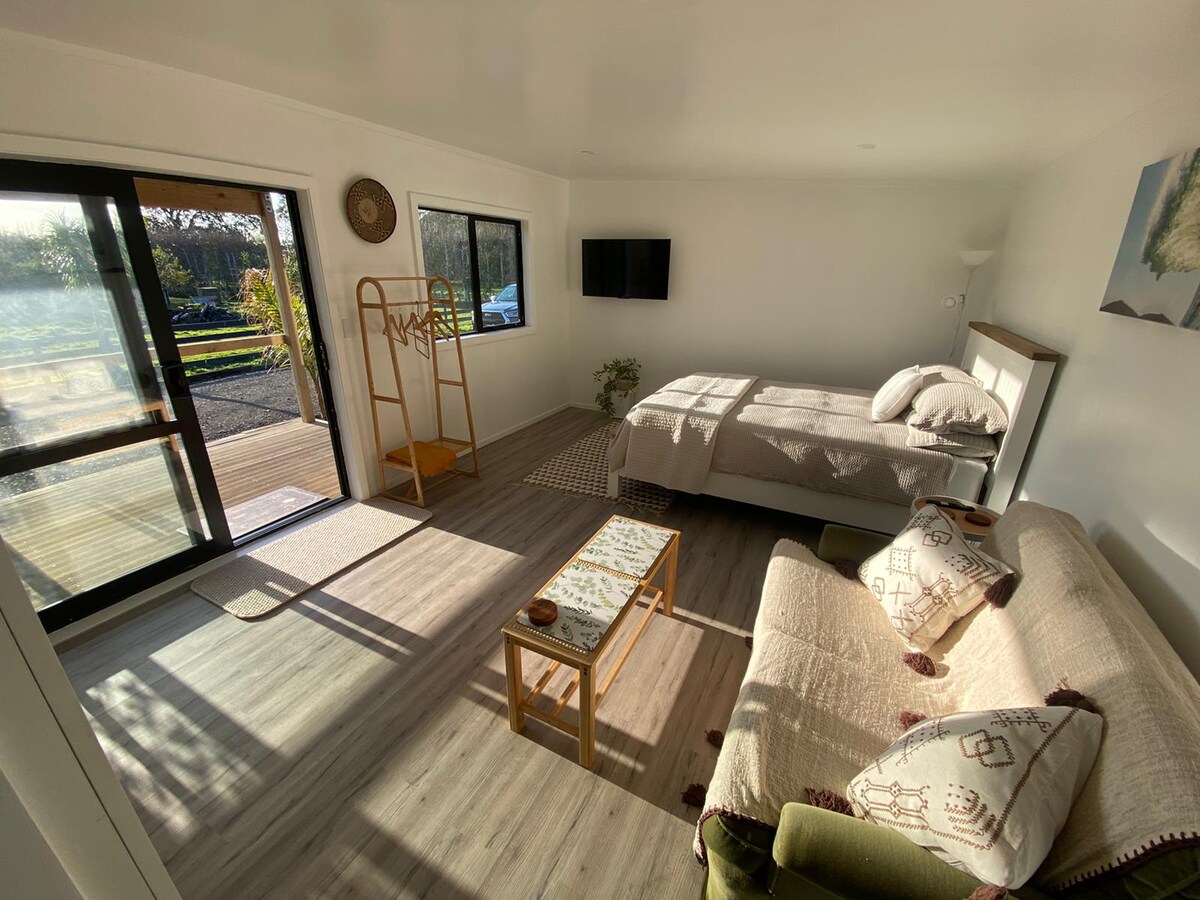 O nosso estúdio moderno e arquitetonicamente concebido é o alojamento perfeito para casais ou indivíduos que procuram uma estadia relaxante e confortável. Situada num quarteirão de hectare com uma vista rural relaxante, a nossa casa fica a uma curta distância (1500 m) da Praia de Wainui e a uma curta distância (5 min) de carro da cidade de Gisborne. A localização perfeita! O nosso estúdio mistura uma estética luxuosa, mas informal, é o lugar ideal para relaxar e desfrutar de Gisborne. Churrasco e prancha de surf disponíveis mediante pedido.